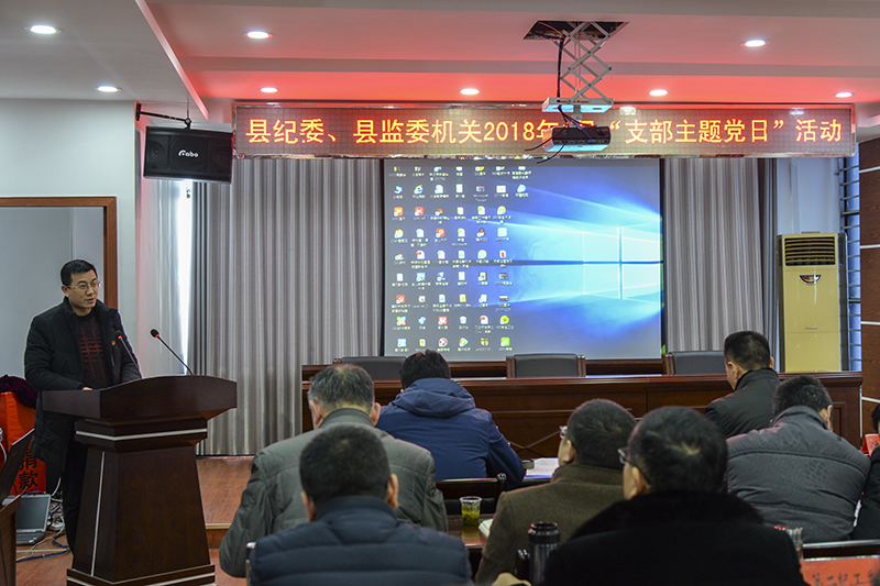 1月8日,县纪委、监委机关开展了以“学习贯彻党的十九大精神,取得2018年工作开门红”为主题的“支部主题党日”活动。县纪委副书记、县监委副主任郭集东主持本次活动,县委常委、县纪委书记、县监察委员会主任杨保东以一名普通党员身份参加“支部主题党日”活动。