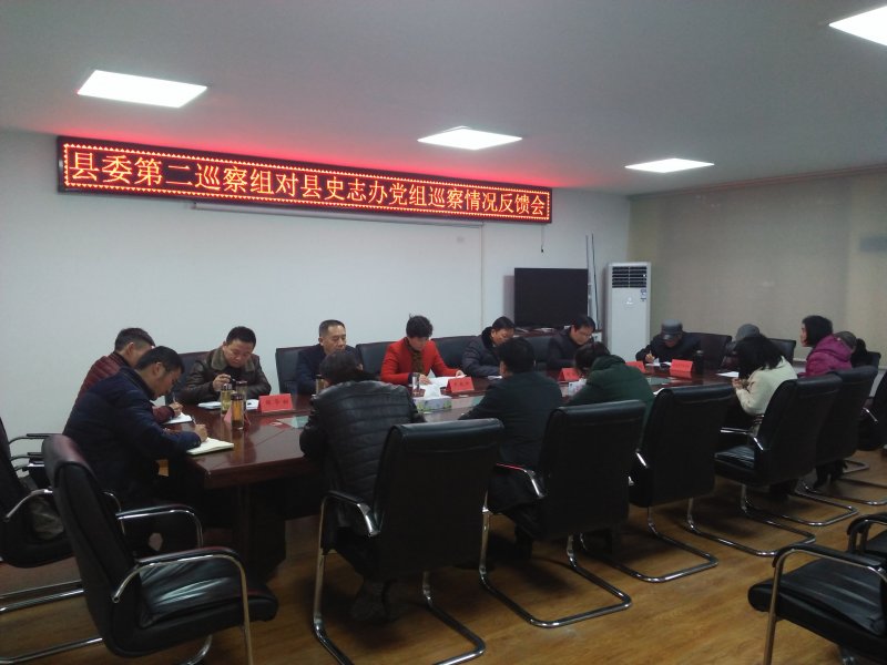 根据县委巡察工作统一部署,2017年7月24日至2017年10月24日,县委第二巡察组对县史志办进行了政治巡察。经县委巡察工作领导小组同意,12月18日,县委第二巡察组在县史志办召开巡察情况反馈会,县委第二巡察组组长胡容顺同志代表巡察组向县史志办党组反馈了政治巡察情况,县委巡察工作领导小组成员、巡察办主任卢殿珍同志就县史志办党组做好巡察整改工作提出要求,县史志办党组书记、主任李茂林同志主持会议并作表态发言。