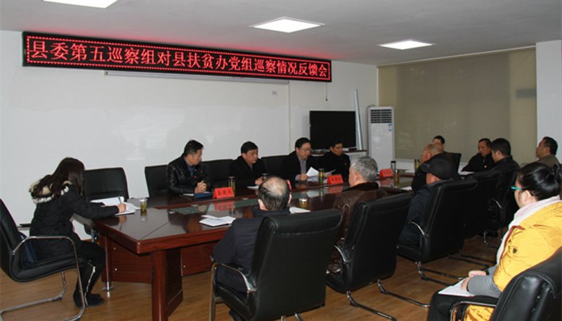 县委第五巡察组全体成员、县扶贫办全体党员干部及服务对象代表参加了会议。